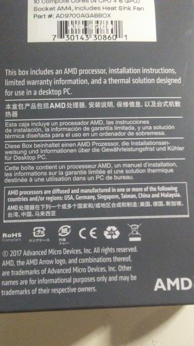 Procesor AMD A10 X4 9700 BOX, AM4, 3.50GHz, 2MB cache, GPU R7, Quad Co