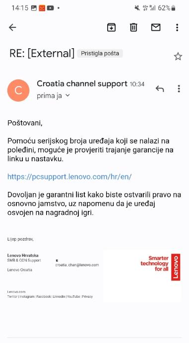 Prodajem novi laptop Lenovo,višak mi je,dobio sam ga na tomboli.