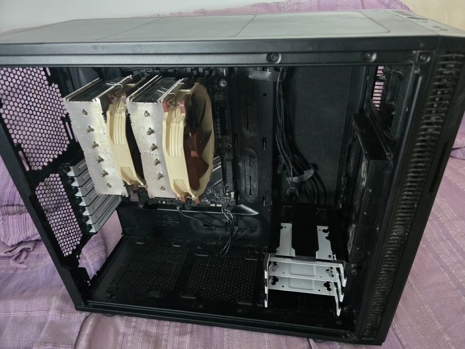 - Na priloženoj slici se vidi: Idu još ladice koje su skinute te dva original Fractal ventilatora koja su išla s kućištem, a koje sam zamijenio svojedobno)