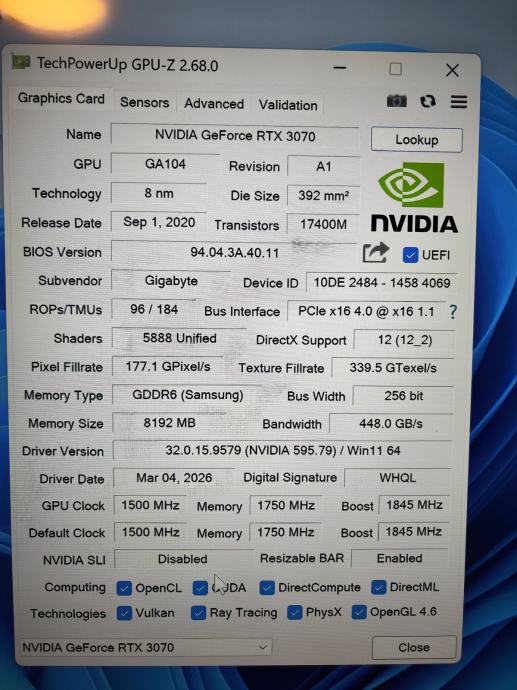 GPU: Gigabyte Aorus Master RTX 3070 8GB GDDR6 sa RGB-om