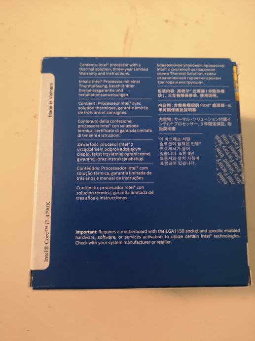 Prodajem gore navedeni Intel Core i7-4790K u originalnom pakiranju kupljen nov 2016. za cijenu od 3300 kn. Dolazi sa originalnim Intelovim coolerom, u potpunosti ispravan, delidding nikad rađen. Cijena 60€ i fiksna.