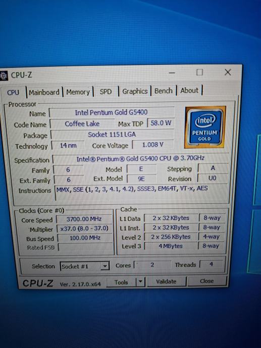 Intel® Pentium® Gold G5400 Processor 4M Cache, 3.70 GHz,8 gen.