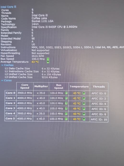 Prodajem procesor Intel Core i5 6 jezgri, 9400F, Coffee Lake, u jako dobrom stanju, do 4GHz, temperatura ok vidi se dolje na fotografiji,radi kao novi. Prodajem ga zbog kupnje jačeg procesora za ekstremniji gaming ;)