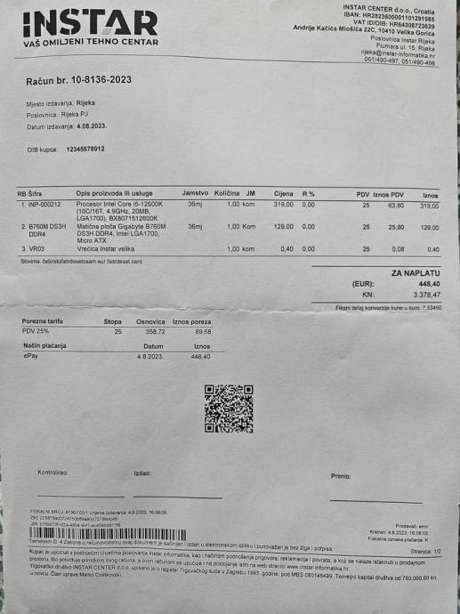 Prodajem procesor Intel i5 12600K. Plaćen 319 eura u Instaru, pod garancijom do 8. mjeseca. Prodajem isključivo jer sam se prebacio na i7.