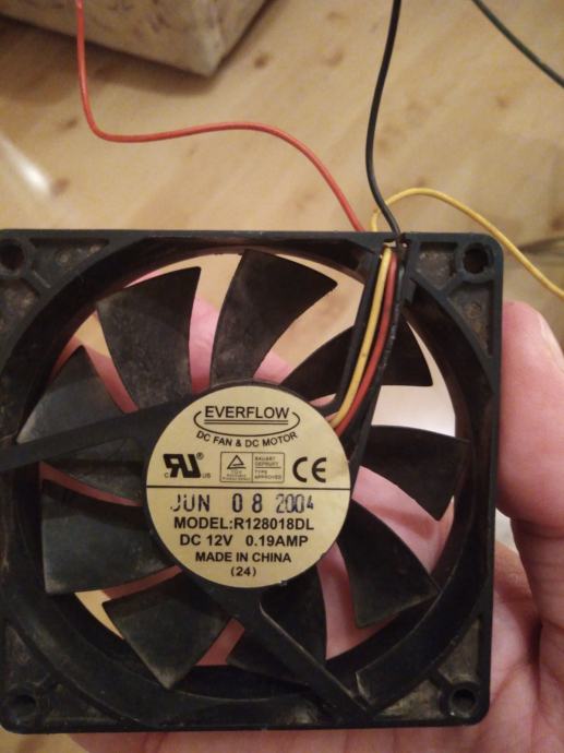 Prodaje se ventilator kučišta proizvođača Everflow, DC Fan&DC Motor dimenzija 80mm*80mm*20mm,Crni,DC 12V 0.19AMP.