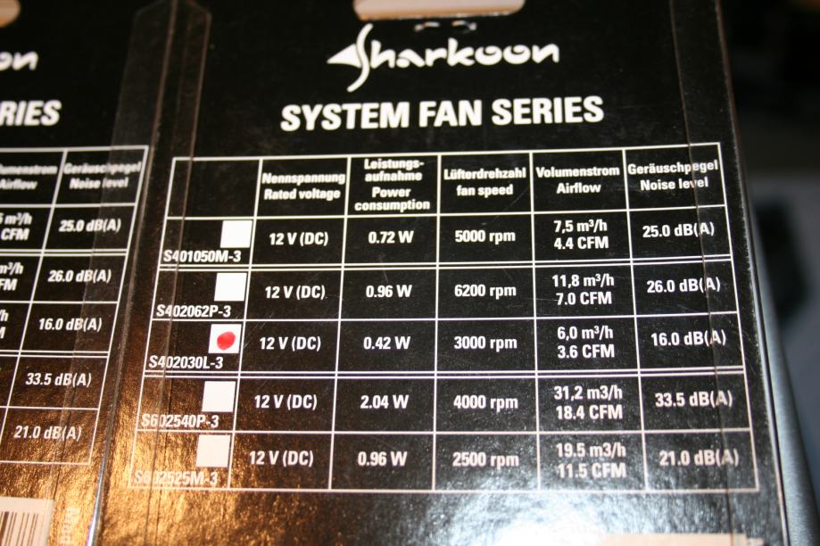 Sharkoon 40x40x20mm 3000 rpm 16 dB(A) 30kn