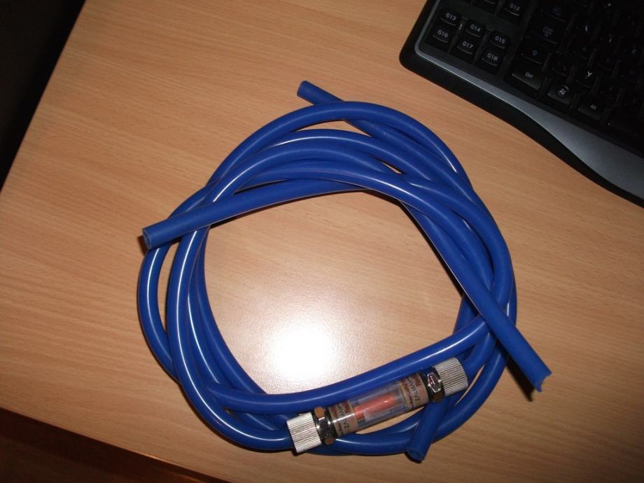 Uz njega dolaze silikonska plava crijeva sa indikatorom protočnosti vode i kopča za CPU blok (socket 775)
