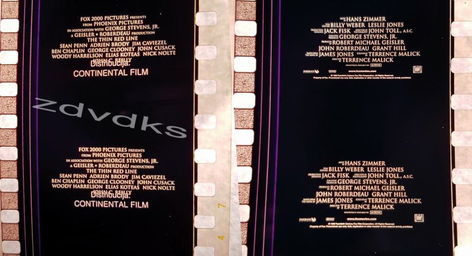 -reklama (ili najava ili foršpan ili trailer): The Thin Red Line 1998 na filmskoj traci u roli od 35 milimetara za kino projekciju