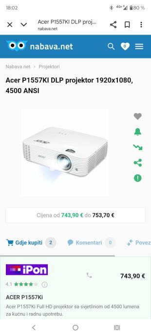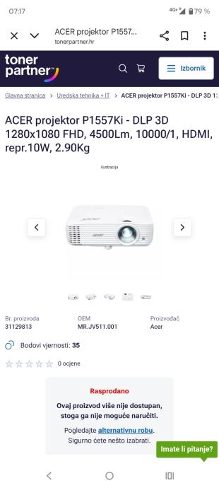 novo bez garancije.cijena nije fiksna.https://www.acer.com/gb-en/projectors/meeting-room/pdp/MR.JV511.001