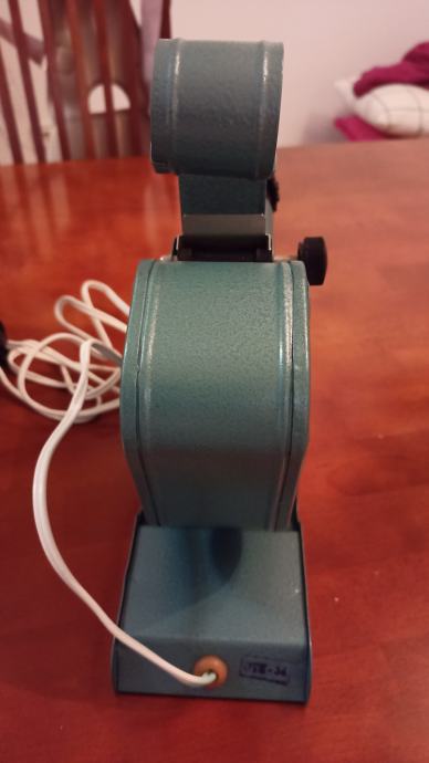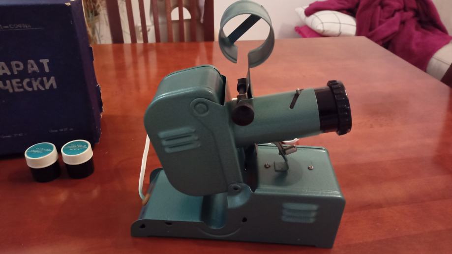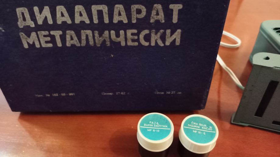 Prodajem nekorišten, ispravan dijaprojektor iz davnih 70-tih godina prošlog stoljeća. Aparat je bugarske proizvodnje, sasvim ispravan, u originalnoj kutiji sa dva crtića iz davnih vremena. Podesiv je kut nagiba i podesiva je leća za izoštravanje slike. Minijaturnih je dimenzija 21x17x8 cm i prikladan je ili za korištenje, ili kao vintage ukras i podsjetnik na neka davna vremena. Cijena 30 eura. Molim zvati na mob. 091/2356157