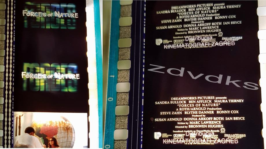-reklama (ili najava ili foršpan ili trailer): Forces of Nature 1999 na filmskoj traci u roli od 35 milimetara za kino projektor