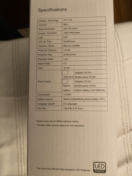 Novi nerabljeni LED Projektor tehnologija TFT LCD prodajem za 40 Eura.