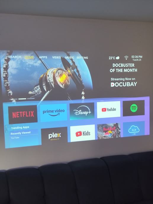 led projektor , sucelje android 9 ... Wifi 6 .. youtube, zaseban operativni sustav bez logiranja nudi razne app za skinuti, bluetooth - hdmi - av - usb povezivanje, dijagonala projekcije do max 300cm ... digitalni zoom , auto focus ... HD rezolucija ... ugrađeni stereo zvučnici 10W