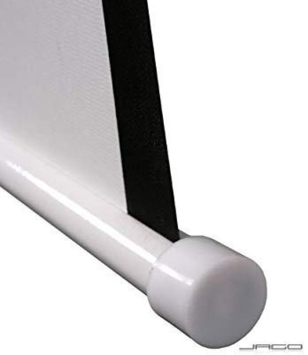 Preklopni zaslon također impresionira HD filmovima s optimalnom slikom i visokokontrastnim zaslonom u boji. Dijagonala zaslona mjeri oko 113 inča ili oko 289 centimetara. Možete kontinuirano i jednostavno postavljati formate kao što su 1: 1, 4: 3, 16: 9 i mnoge druge. Zaslon ima faktor pojačanja 1,0. Ovo je optimizirano za projekcije s LCD i DLP projektorima. Ovdje ste uvijek fleksibilni, kao što je slučaj s montažom na zid ili na strop. Zaslon projektora sastoji se od troslojne tkanine koja se lako čisti vlažnom krpom zahvaljujući vinilnom premazu. Nakon upotrebe, platno se može ponovo smotati i ostaje bez nabora zahvaljujući tehnici valjanja.