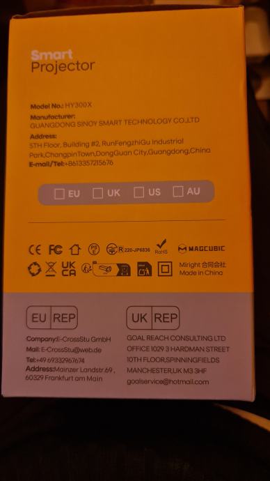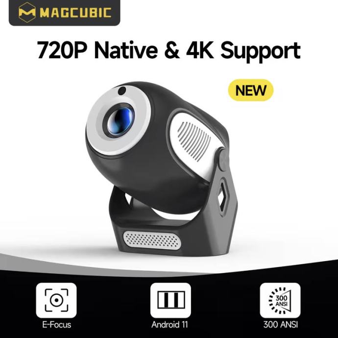 HY300X Projector with 720P Native & 4K Support, 300ANSI Lumens, Electronic Focus & Auto Keystone Correction, Android 11 Projector with Built-in Speakers, Wi-Fi Enabled, Compatible with Android Apps & phones/Tablets/Laptops for Home Theater