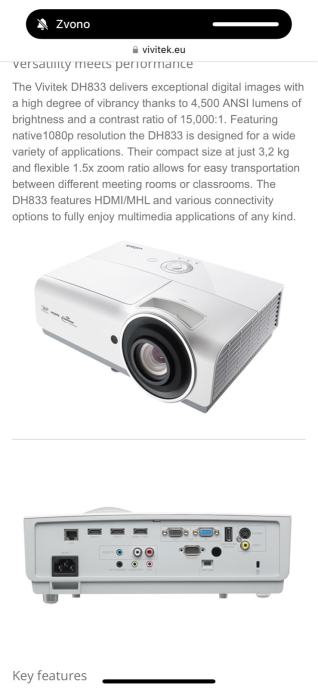 Sve dodatne karakteristike na stranici: https://www.vivitek.eu/Category/Discontinued-Projectors/163/DH833.