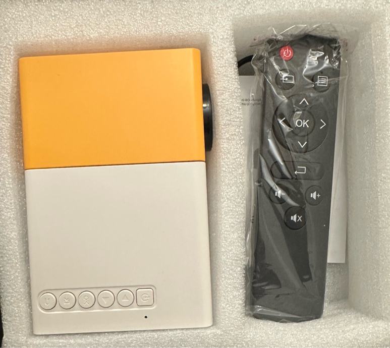 Prodajem novi, zapakiran LED projektor u bijeloj i žutoj boji. Idealan je za gledanje filmova, serija ili prezentacija kod kuće. Projektor dolazi s daljinskim upravljačem i svim potrebnim priborom.