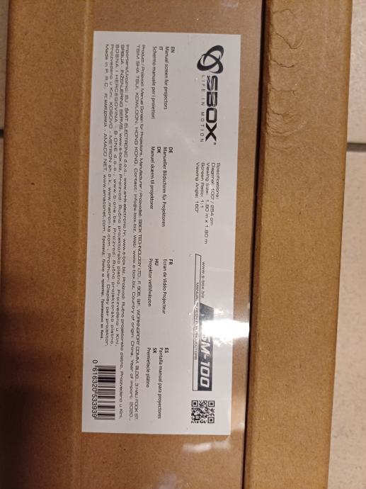 Prodajem novo, neotpakirano zidno projektorsko platno SBOX FSM-100 dimenzije 180x180cm.