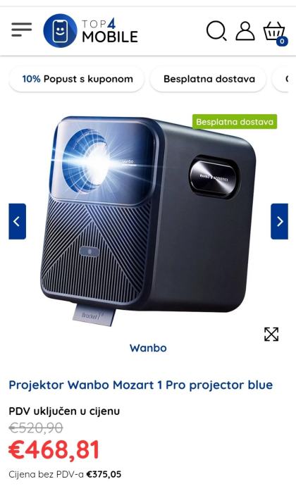 Prodajem novi zapakirani projektor wanbo Mozart 1 pro. Najbolji i najjači model renomirane firme projektora. Prodajem ispod cijene za samo 330 eura. Prodajem ga jer mi je višak imam TV 75 incha i nije mi potreban projektor a dobio sam ga na poklon.