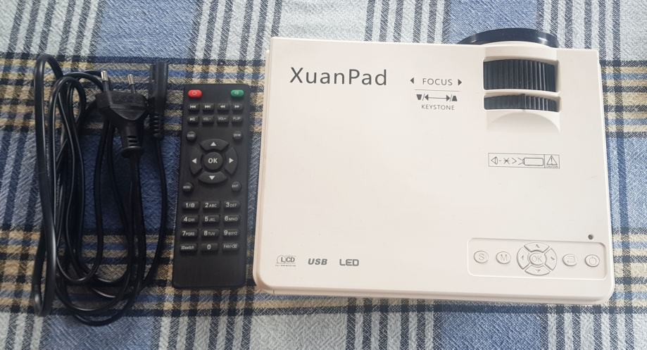 XuanPad mini projektor, model X008. Malo korišten, povremeno za serije i filmove u rasponu od 3 godine. Sve ispravno, u kompletu daljinski i strujni kabel.