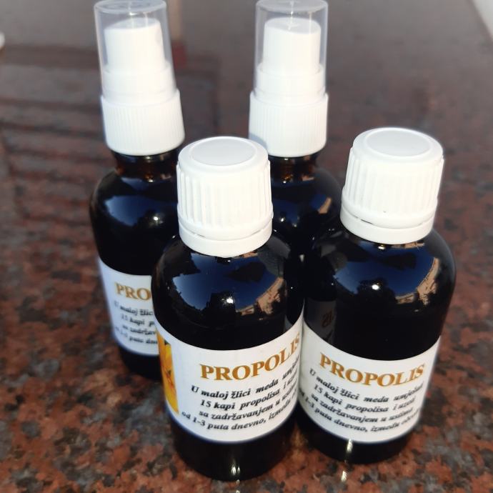 Propolis, minimalno 35%, vrhunski kvalitet u staklenim bočicama, sa kapaljkom ili pumpicom (sprej). Sadržaj 60 ml ± 2%.