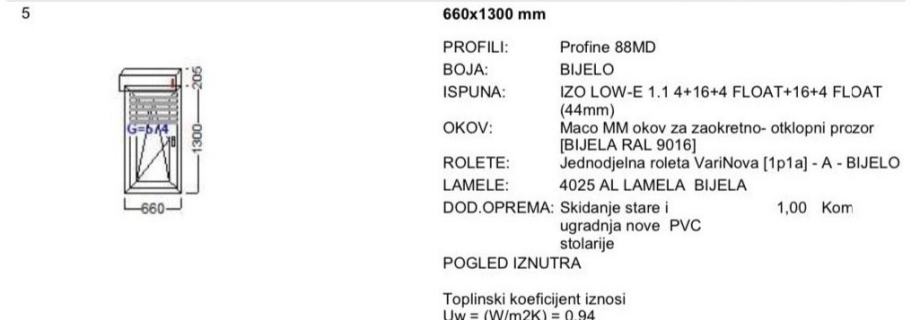 STAKLO u ponudi je IZO prozirno debljine 24 mm (4mm staklo + 16 mm zračni prostor + 4 mm staklo) ,ako u stavkama ponude