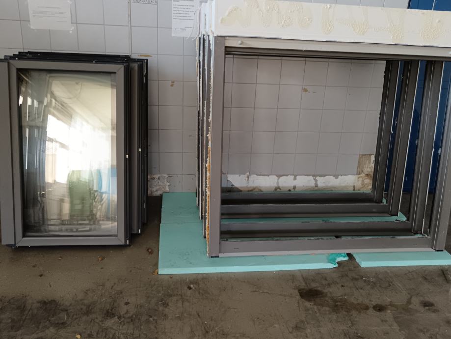 Alu prozori sa roletama i troslojnim staklom, RAL 7039 quartz grey dimenzije širina160 x visina145cm, korišteni 15dana, cijena po komadu 650€.