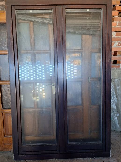 Prodajem više komada drvenih balkonskih vrata s okvirom dimenzija širine 140 cm i visine 220 cm.