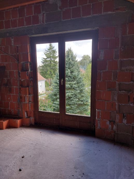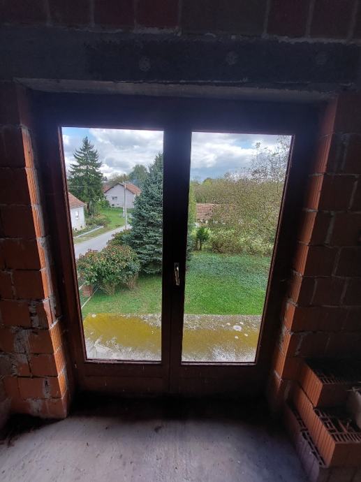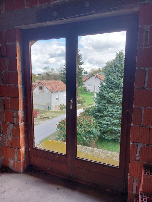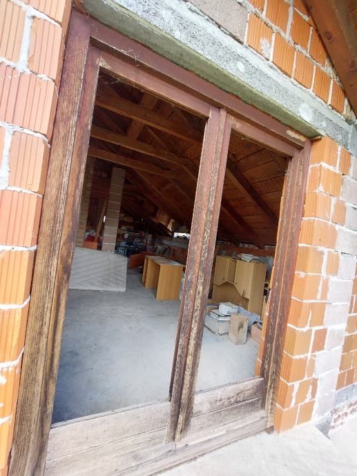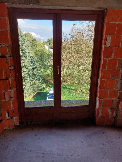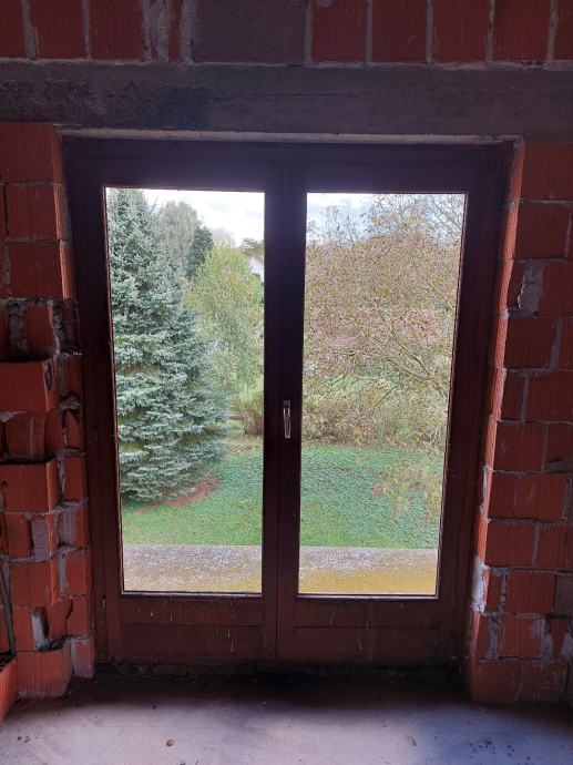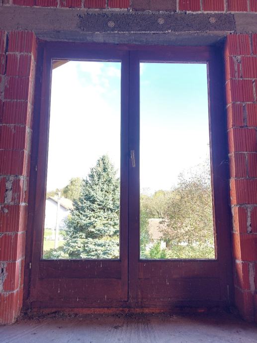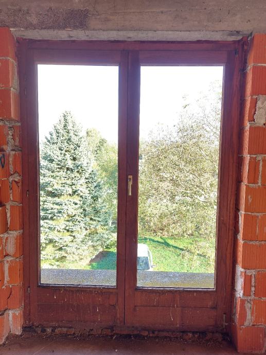 Dvokrilni balkonski prozor bez stakla od hrastovine.