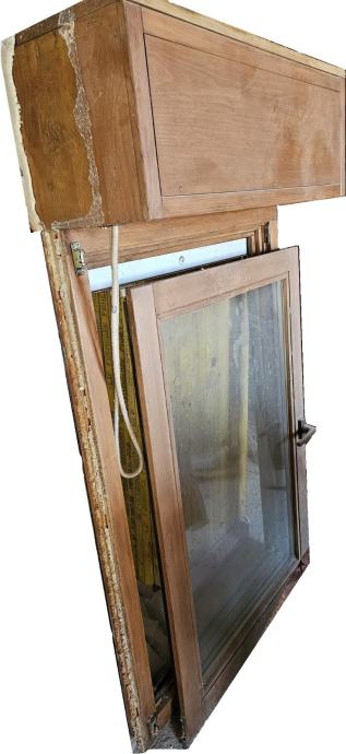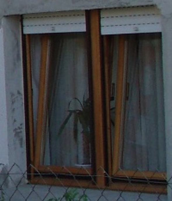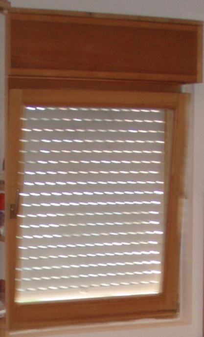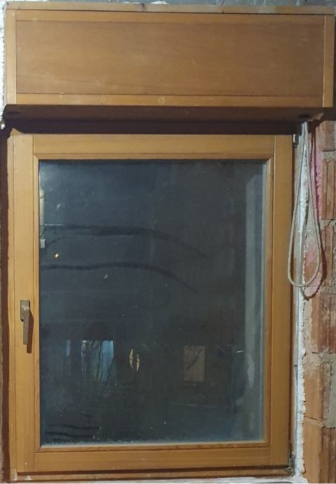 Drveni prozori sa dvoslojnim izo staklom, sa roletama, ukupne visine 148 cm (120 cm bez roleta), širine 80cm, 100cm i 160 cm (mogu se razdvojiti na dva od 80cm).