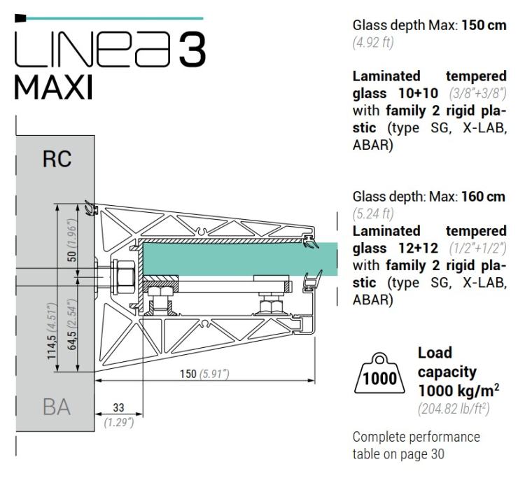 Kontinuirana vodilica za staklenu nadstrešnicu - izbačaj stakla do 1500mm