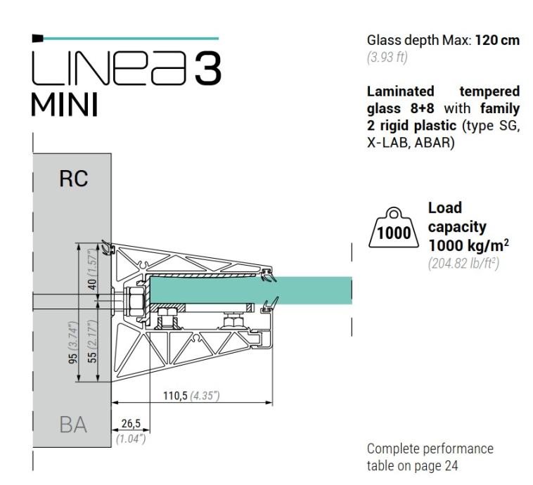 Kontinuirana vodilica za staklenu nadstrešnicu - izbačaj stakla do 1200mm
