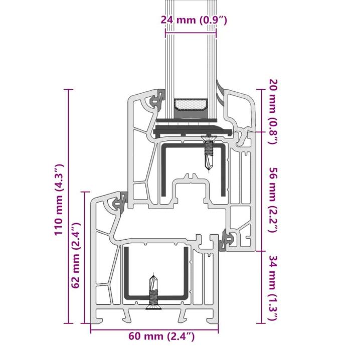 Stabilna struktura: Okvir ima dubinu od 60 mm i temelji se na 5-komornom sustavu s čeličnom jezgrom u obliku slova U iznutra za veću stabilnost.