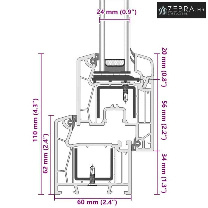 Profil: Okvir ima dubinu od 60 mm i 5-komorni sustav