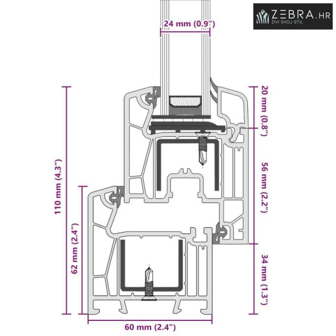 Okvir ima dubinu od 60 mm i 5-komornog sustava