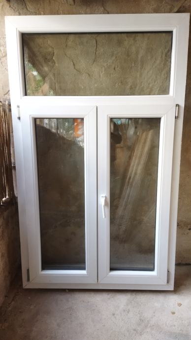 Prozor PVC dvokrilni sa nadsvjetlom i komarnikom. Staklo punjeno argonom. Bio u apartmanu 1god. Zamijenjen sa balkonskim vratima zbog nadogradnje balkona. Mogućnost dodatnog prozora uz dogovor.