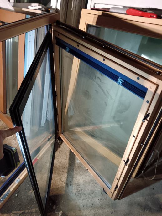 Novi prozori drvo-aluminij sa troslojnim staklom i skrivenim okovima ekstra kvalitete. 4 komada, svi su iste dimenzije ali su svi različite boje. Cijena je 200-250 eura komad