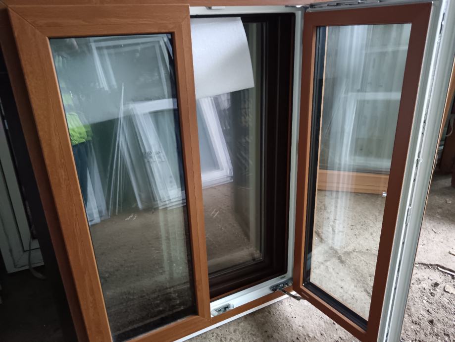 Novi dvokrilni prozor PVC-ALU u boji drveta sa troslojnim staklom, skriveni okovi. Prozor je PVC, izvana aluminijski, ekstra klase