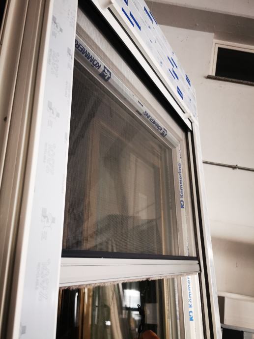 Pvc jednokrilna O/Z balkonska vrata sa roletom i komarnikom, lijeva, potpuno nova nikad ugrađena, pvc kommerling elegans 76s, bijela boja