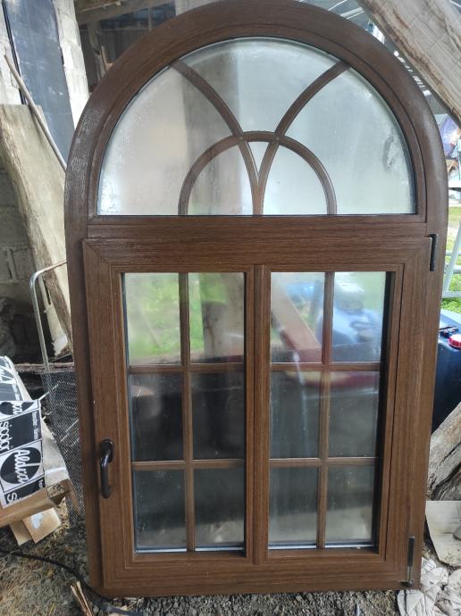 PVC prozor u boji drveta kao nov, nekorišteni, polukružni