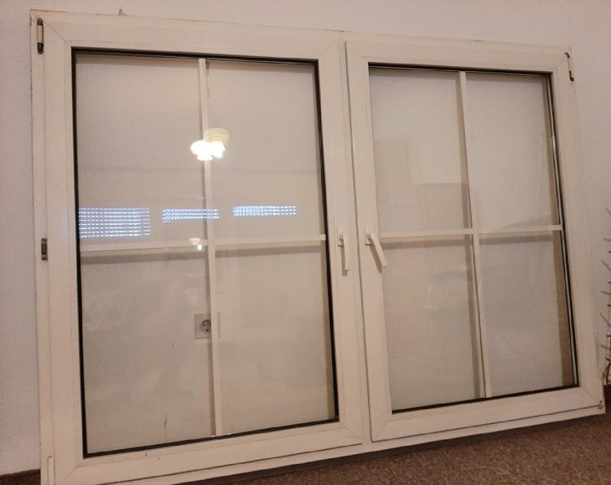 PVC dupli prozor bijeli, sa srednjom poprečnom gredom.