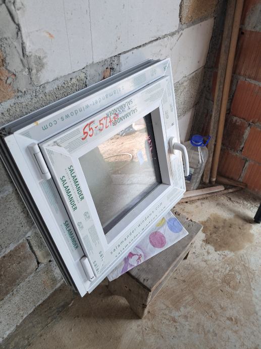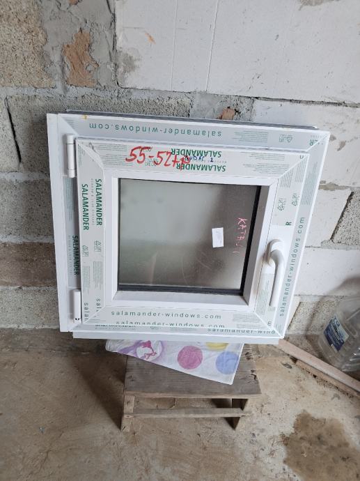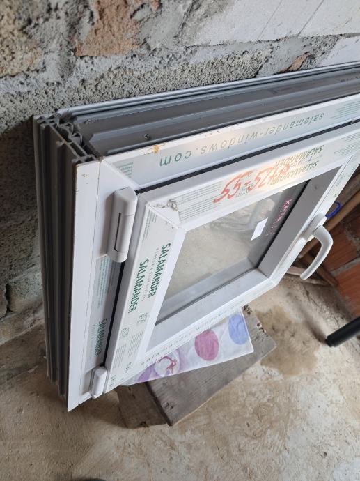 PVC PROZOR Novo SALAMANDER ,NJEMAČKA KVALITETA,3brtve,ornament staklo.dim.š.55x52 +okvir podštok 3cmm.