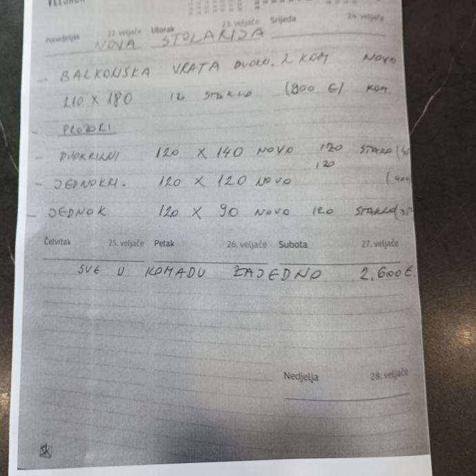Prodajem novu ne rabljenu PVC stolariju dimenzije u slikama,u komadu sve 2600 eura,pojedinačna kupnja po dogovoru.Zvati na telefon 099 741 2671