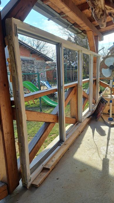 Prodajem rabljenu pvc stjenu duljine 345 i visine 147 cm, stjenka je u dobrom stanju ima 4 polja u sredini dva polja su fiksna stakla a krajnja dva polja su prozori na otvaranje i kipu.