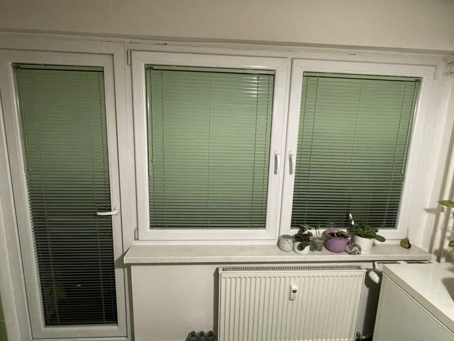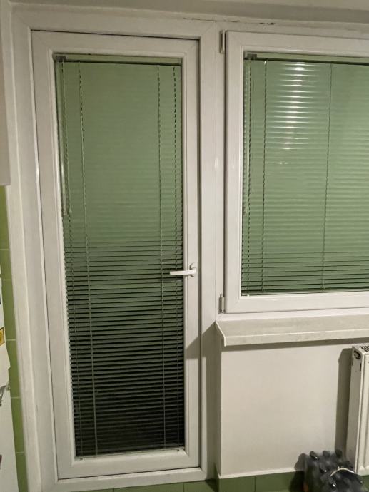 Rabljena PVC balkonska vrata sa zatvaranjem na magnet , zaključavanje na kvaku. Dimenzije okvira 83x213 cm, stara 4 godine u super stanju, mijenjana zbog renovacije. 3D Salamander staklo prozora. Uz njih unutarnje žaluzine (venecijaneri).