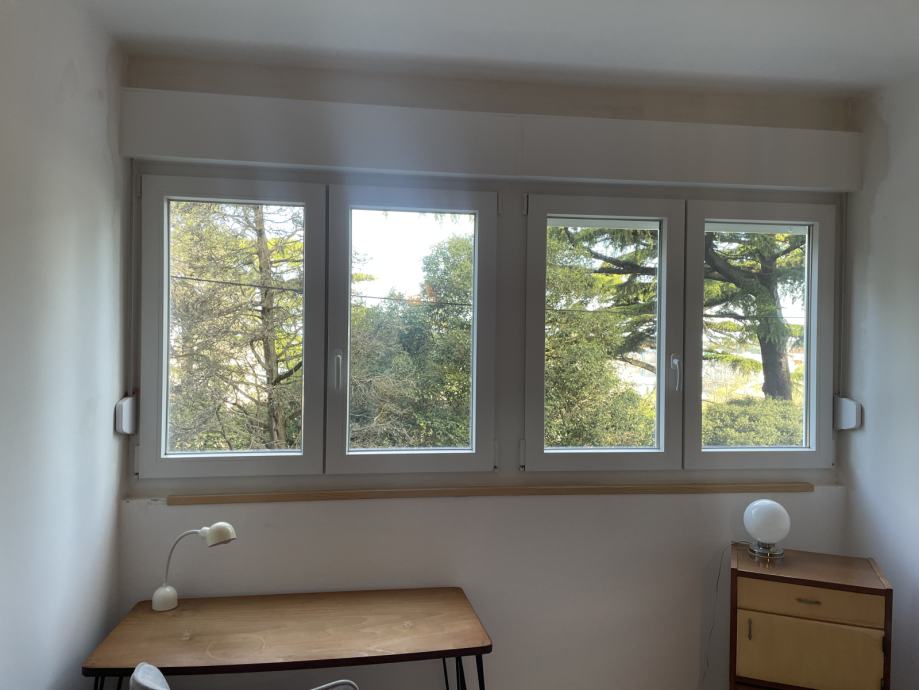Svaki dvokrilni prozor je 1345x1160 mm + lutija sa roletnama od 220 mm