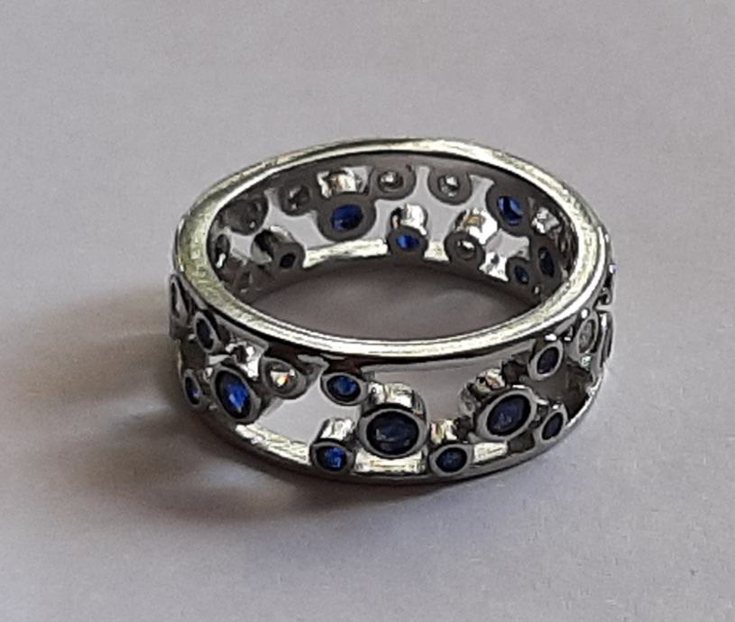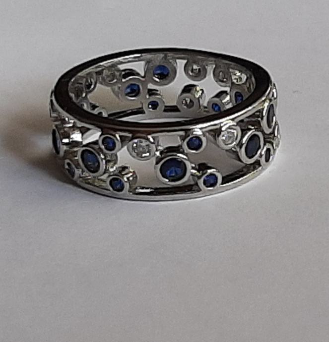2+1 gratis!Poseban srebrni prsten s plavim i prozirnim cirkonima, 19mm
