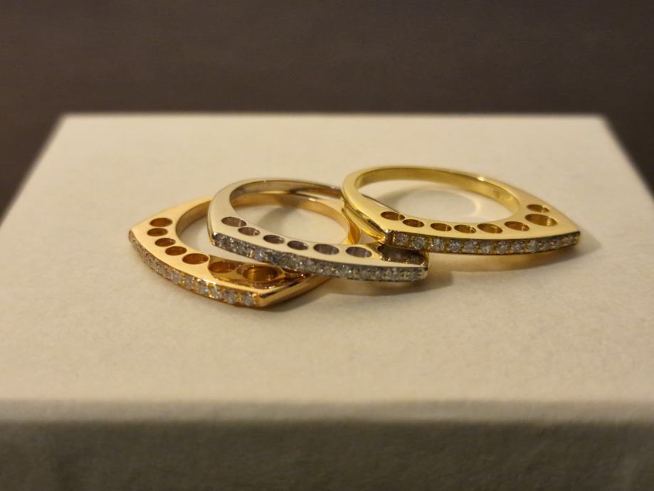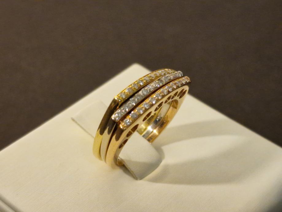 Prodajemo set prstenja od bijelog, žutog i roze zlata s dijamantima.