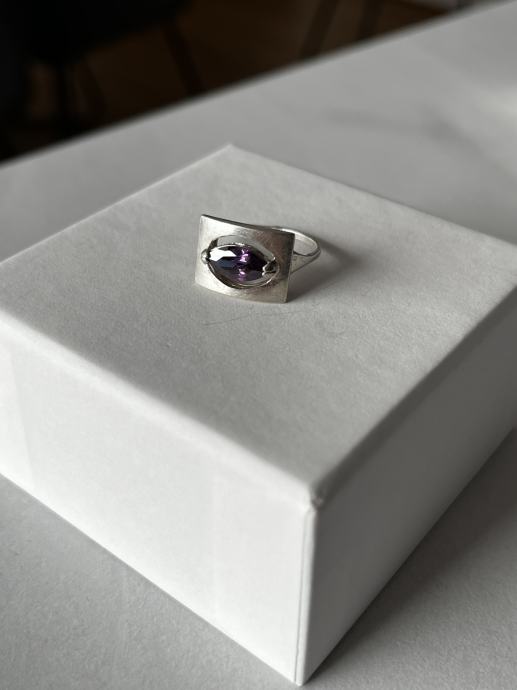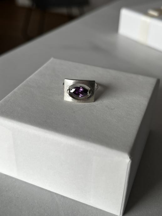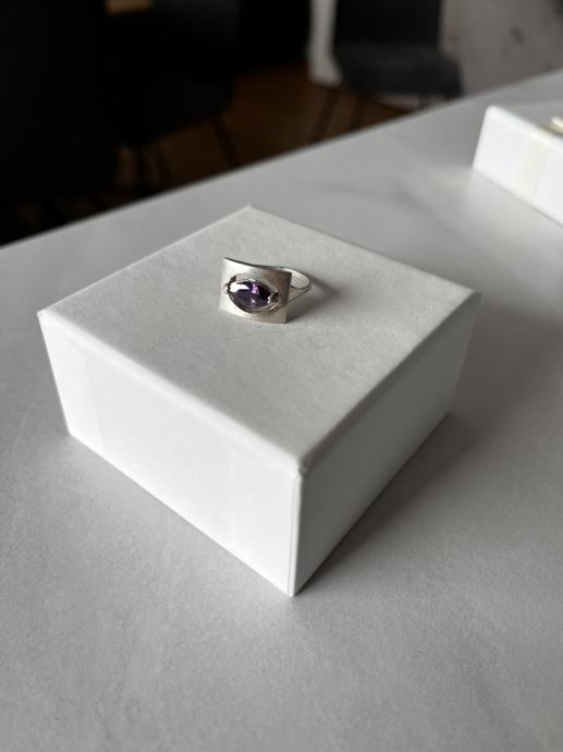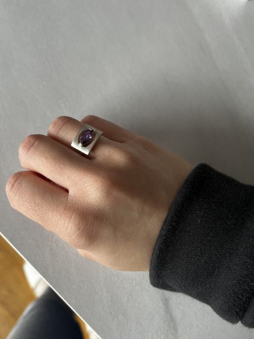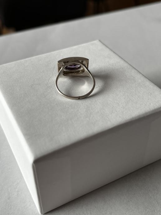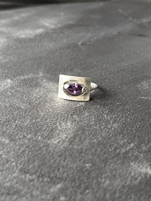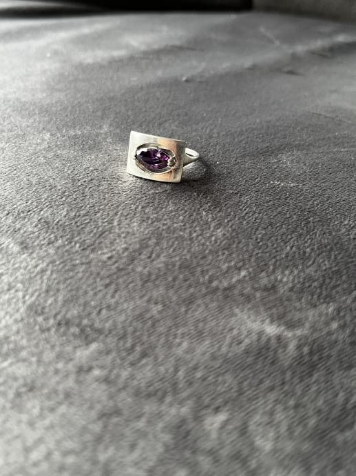 Kupljeno u antikvarnici, nikad ga nisam nosila jer mi je velik, promjer 16,6 mm, ametist.