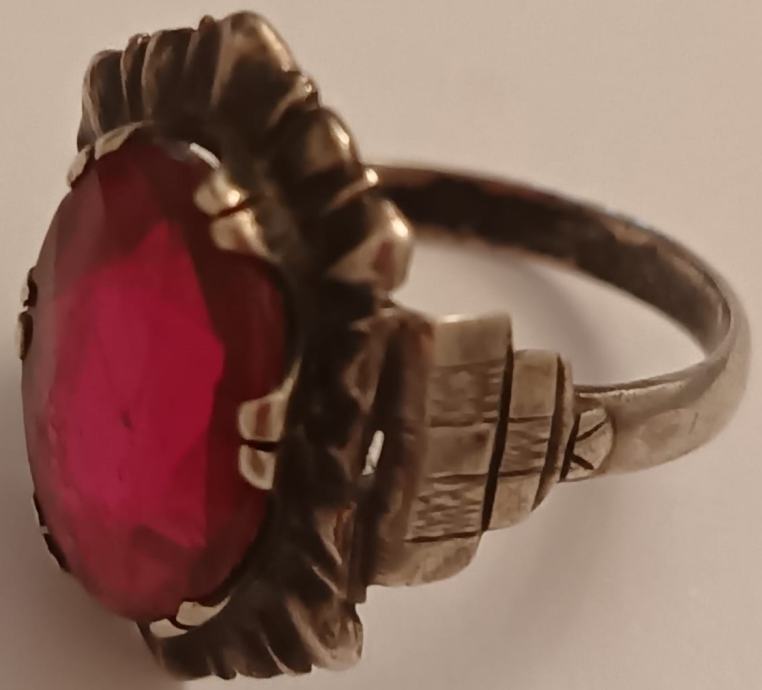 antique srebrni prsten sa rubinom